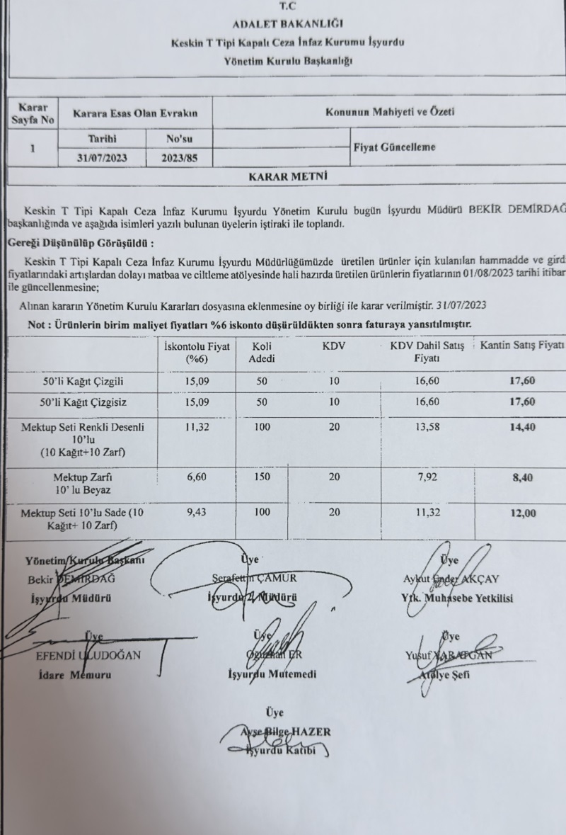 İŞ YURDU MATBAA ÜRÜNLERİ FİYAT GÜNCELLEMESİ.